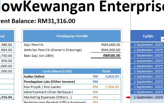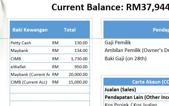 Bukan sekadar template – ni panduan lengkap urus aliran tunai! Selari dengan keperluan prinsip perakaunan SME Malaysia, SSM standard, dan use-case sebenar khusus untuk peniaga kecil, freelancer, Solopreneur, Kontrantor dan individu yang urus banyak akaun. Terus dapat lihat Buku Tunai, Penyata Untung Rugi & Carta Jualan.
