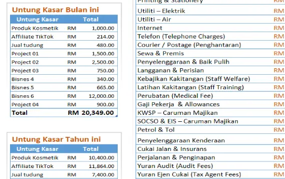 – Kos Jualan (Cost of Sales / COGS), dan lain-lain.