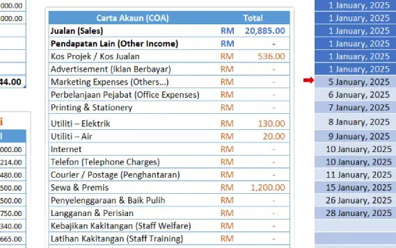 3. Mengasingkan kategori perbelanjaan (chart of Account) mengikut mengikut standard keperluan LHDN/Bank;