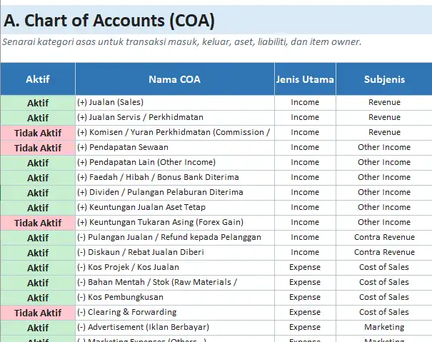 ✔️ COA dinamik: tambah, ON/OFF ikut keperluan