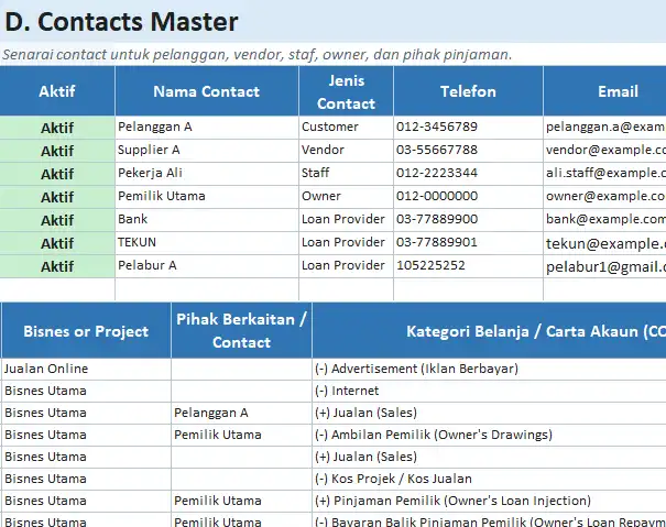 – Simpan customer, supplier, staf, owner dan pemberi pinjaman