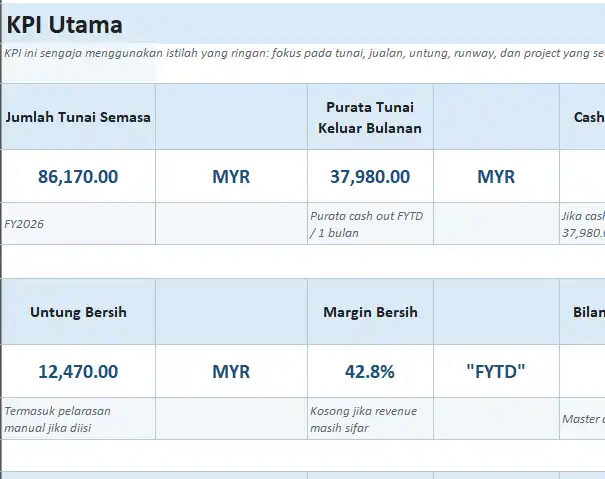 Template Excel untuk owner bisnes yang mahu rekod kewangan lebih kemas, laporan lebih lengkap, dan nampak keadaan sebenar bisnes tanpa perlu guna sistem yang berat.