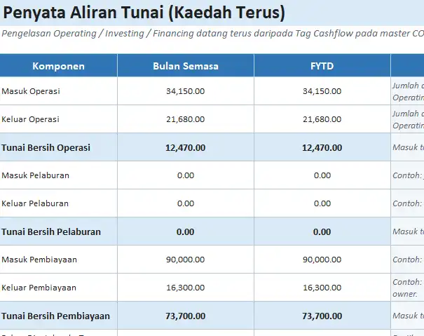 7. Penyata Aliran Tunai yang bantu nampak dari mana duit datang dan ke mana duit pergi.