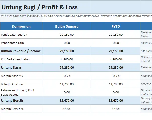 ✔️ Laporan Penyata Untung Rugi Tahunan & bulanan