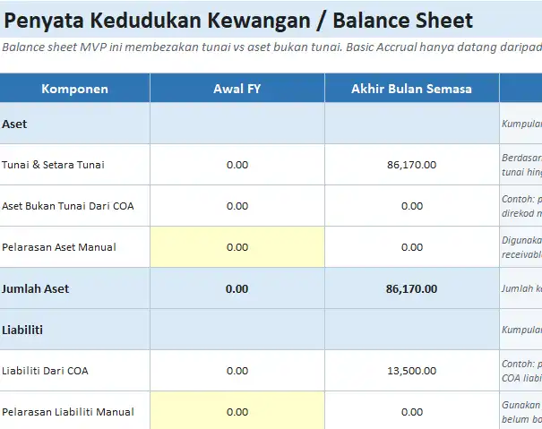 – Nampak jumlah aset, liabiliti dan ekuiti dengan lebih jelas