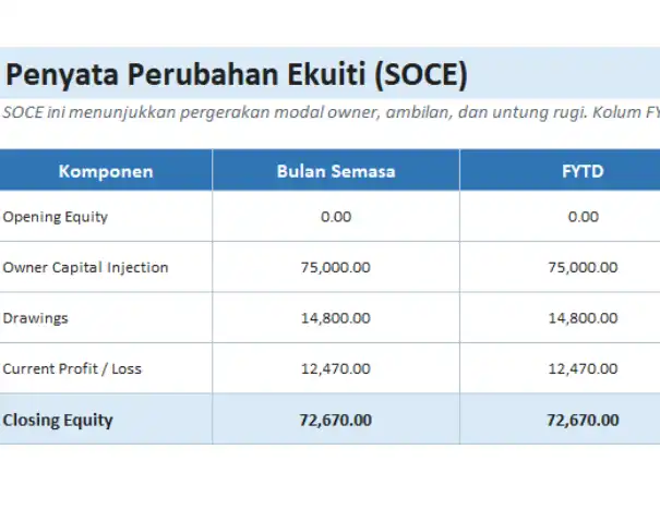 10. Penyata Perubahan Ekuiti untuk jejak modal, ambilan dan untung rugi owner