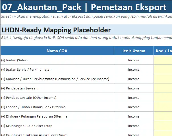 – Ada placeholder pemetaan yang lebih mesra akauntan